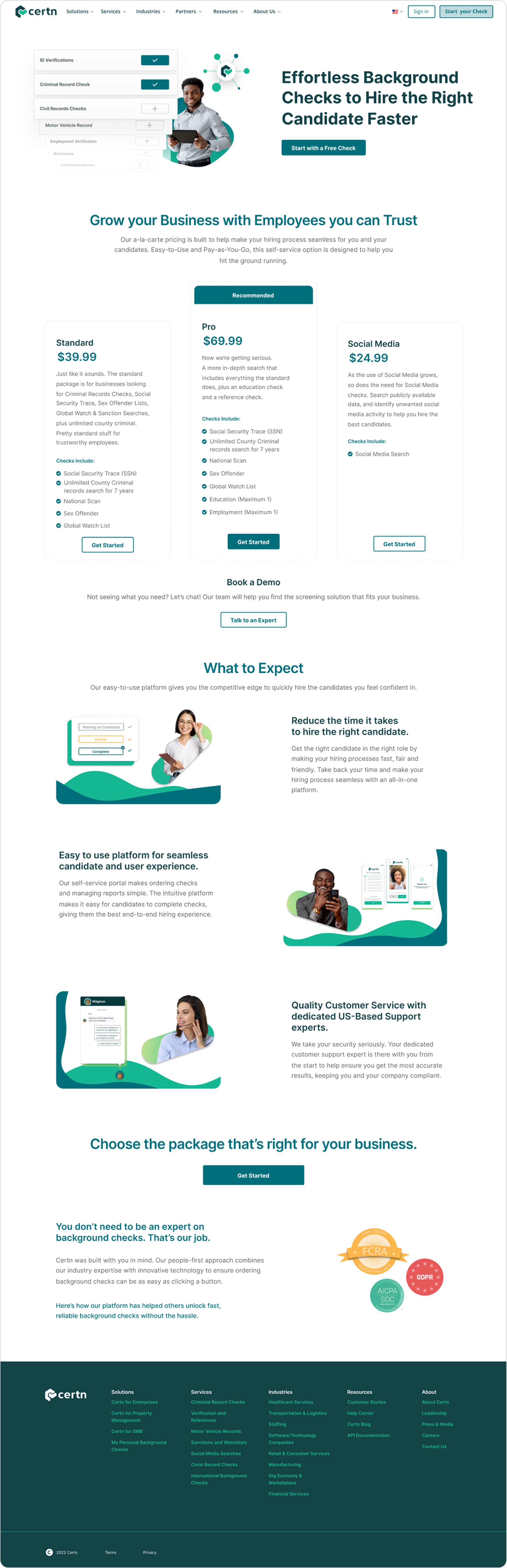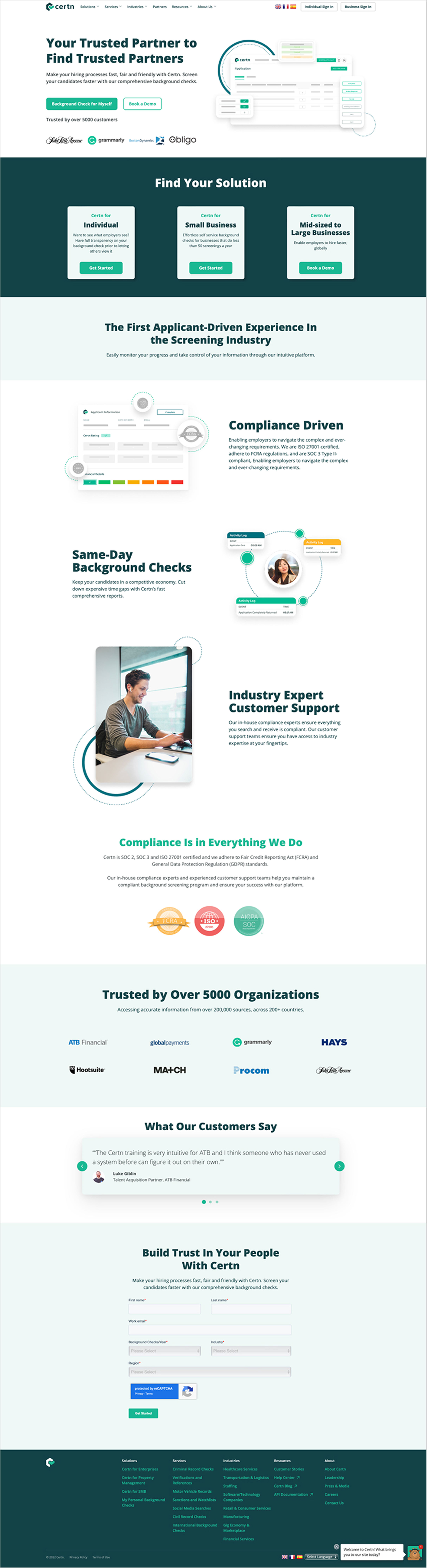 Certn is a global background screening platform serving both individuals and businesses. With services ranging from reference checks to international criminal background checks, the product experience is grounded in trust, clarity, and usability. This project focused on improving landing page conversion by better segmenting users and tailoring the experience to their distinct needs, helping users more clearly understand available background check options in Canada.